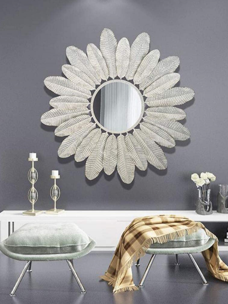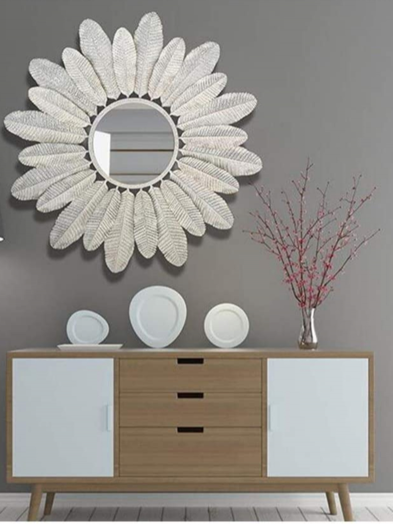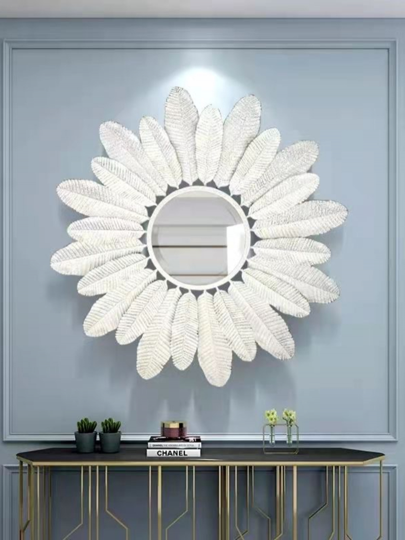 ♥Fashion design – striking wall-mounted design, Three-dimensional white feather border, and stylish, beautiful, round wall mirror will bring you a new decoration experience, and make your room theme more unique.