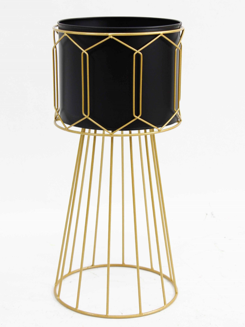 - This metal planter and stand set measure 37 x 37 x 64cm high at the widest points. It is made of metal.