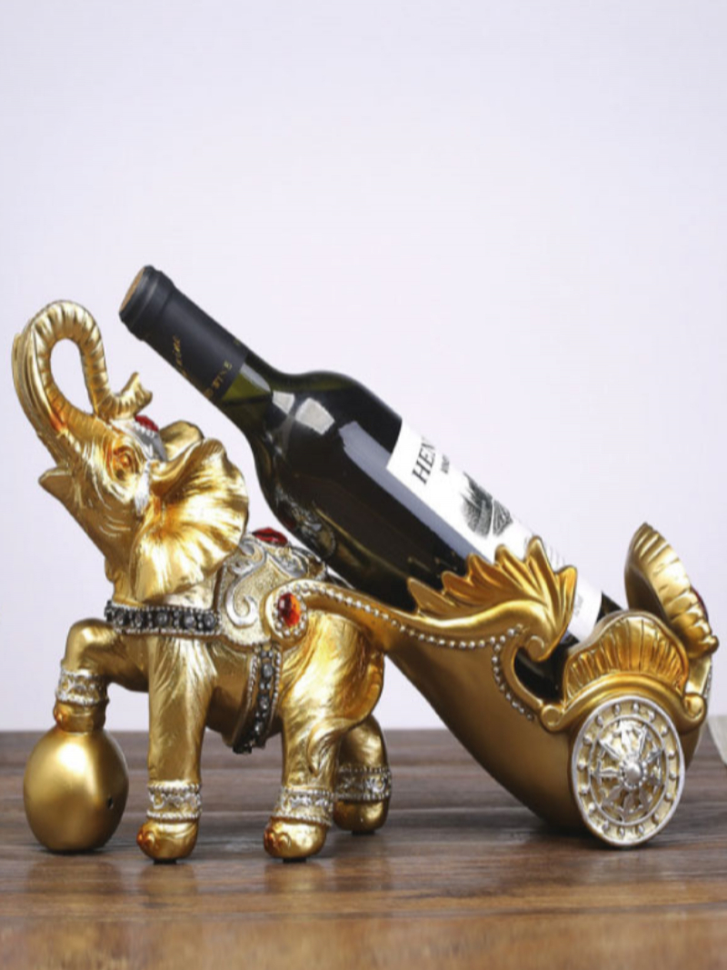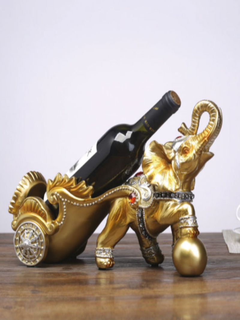 This stylish handmade gold elephant trailer wine rack, simple modern and vintage style design exudes a strong unique chic atmosphere, let us enjoy it. High-quality workmanship, delicate and clear soft structure, and groove design, steadily effectively protect the red wine from slipping. It will be an attractive one when your friends visit your house.
