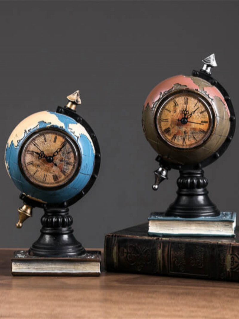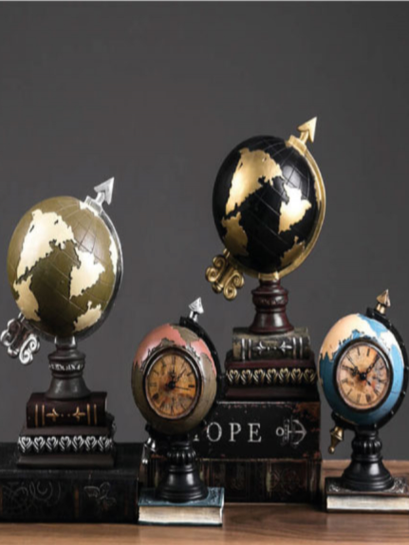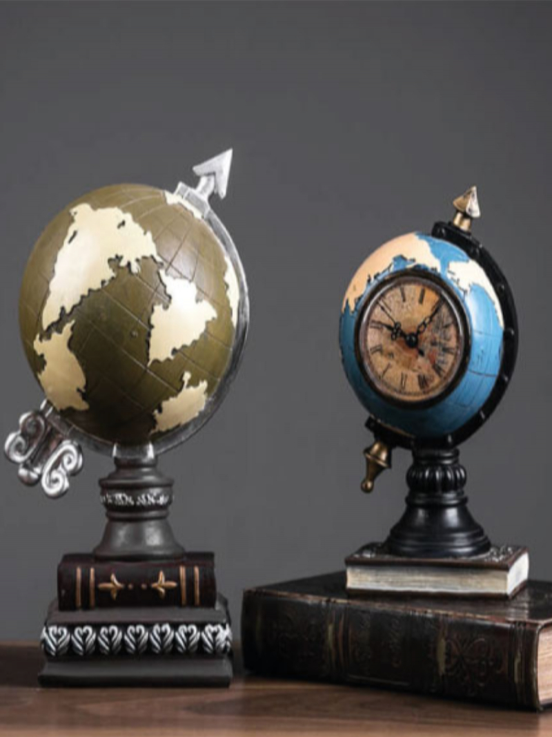 Material: Resin. Piggy Bank Globe Size: L13*W12*H23cm. Clock Piggy Bank Globe Size: L12*W11*H24cm.